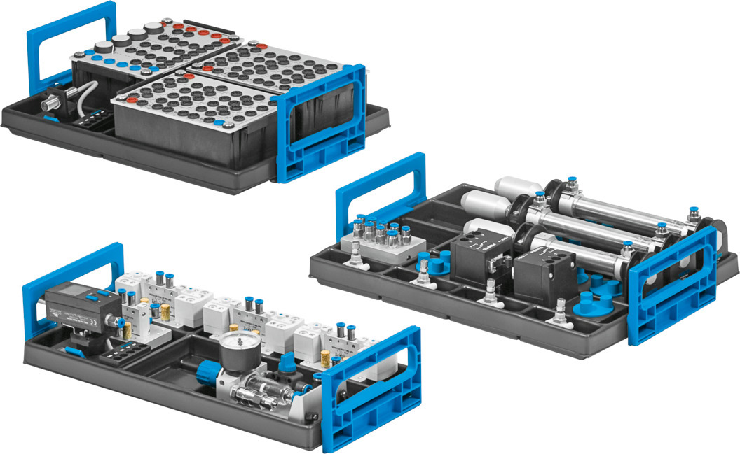 Việc đào tạo cơ bản về kỹ thuật điều khiển điện khí nén là trọng tâm của Bộ thiết bị điện khí nén, cấp độ cơ bản (TP 201). Kiến thức về chức năng và cách sử dụng các bộ phận khí nén và điện được truyền đạt. Trọng tâm là van điện từ, công tắc tiệm cận điện tử và điều khiển rơ le. Phối hợp tối ưu với các phương tiện đào tạo cung cấp các nhiệm vụ dự án rõ ràng.