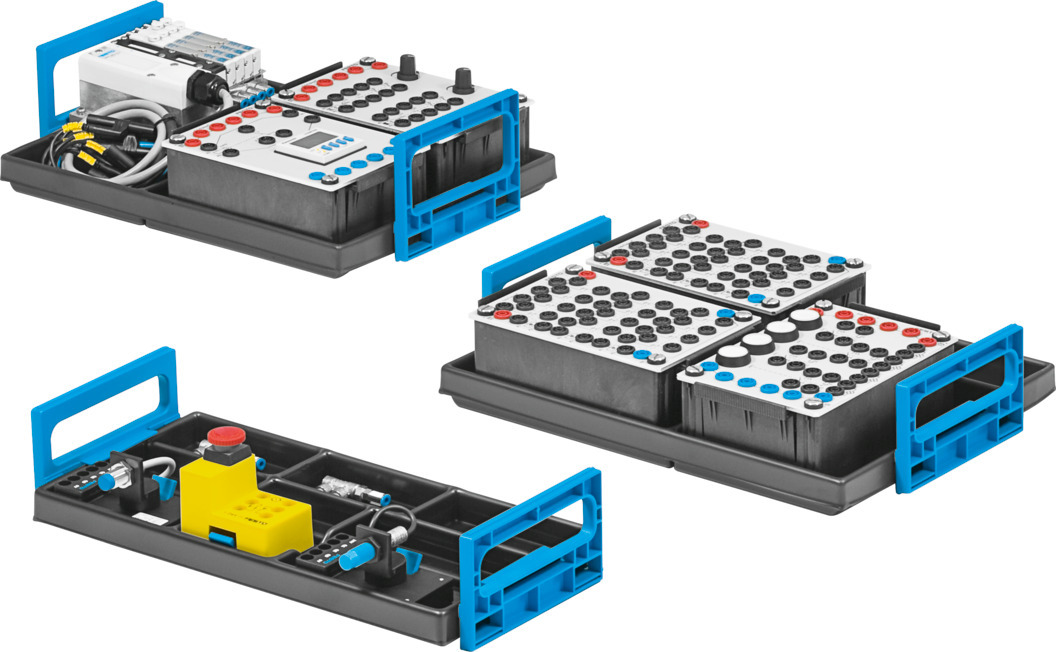 Các bộ phận có thể được sắp xếp linh hoạt bằng một tay mà không cần dụng cụ trên tấm định hình có khoảng cách rãnh 50 mm hoặc trong khung treo ER để thiết lập nhiều loại điều khiển khí nén khác nhau. Tất cả các kết nối khí nén và điện đều được đặt ở phía trên dễ tiếp cận của các bộ phận. Các bộ phận khí nén được trang bị các mối nối vít cắm cho ống nhựa 4 x 0,75 mm dành cho các loại ống được hiệu chuẩn bên ngoài. Các bộ phận điện có ổ cắm an toàn 4 mm. Tất cả các bộ phận được thiết kế với chất lượng công nghiệp.